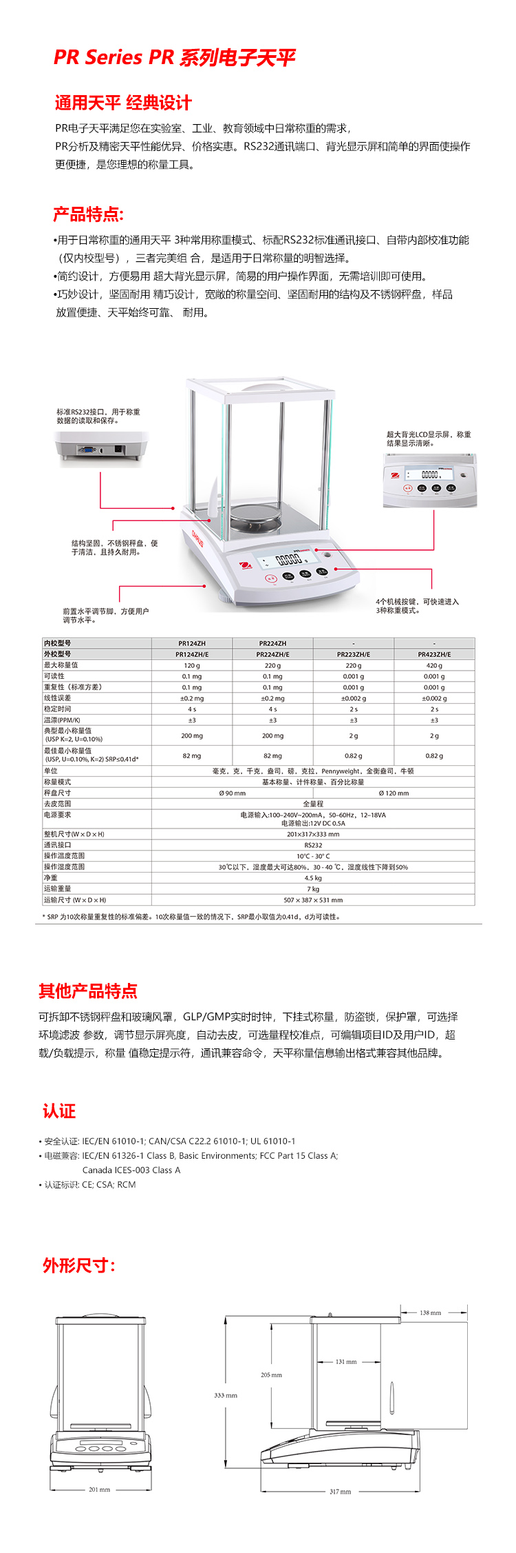 電子精密天平/PR223ZH/E