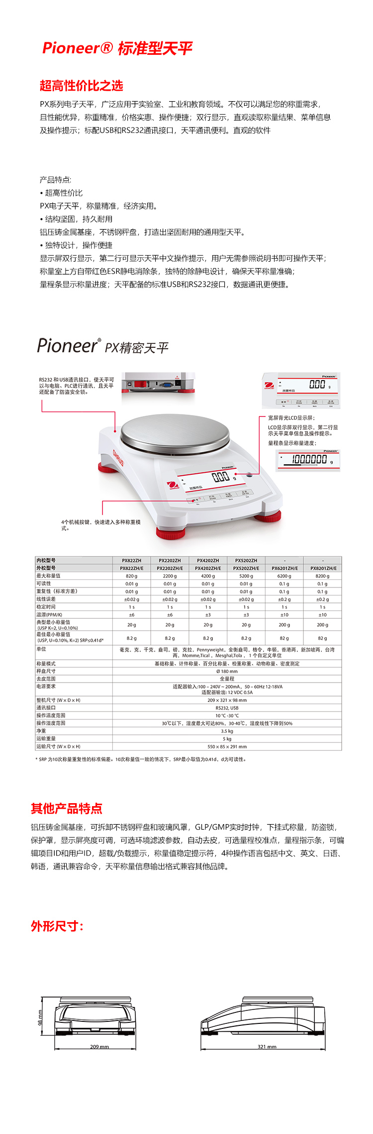 產(chǎn)品名稱:電子精密天平/PX2202ZH/E